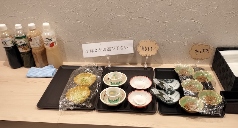 2品お選びいただけます。(お任せ小鉢、海苔、たまご、納豆、サラダなど日替わり)