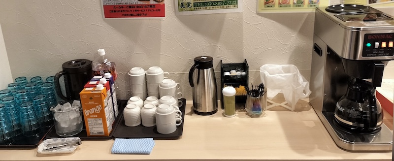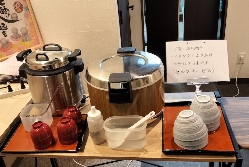 ご飯、味噌汁、お飲み物(コーヒー、ジュース)はセルフサービス(おかわりOK)です。