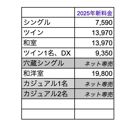 2025年1月2日ご予約受付分より、電話予約の場合の宿泊料金を一部改定させていただきます。