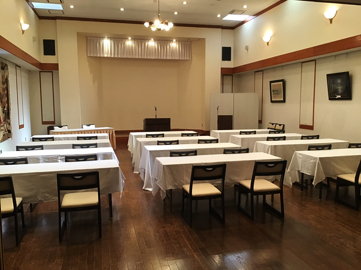 ◎ 駐車場のご利用は無料(一部有料スペース有り)ですが、駐車可能台数に限りがございますので、御了承下さい。駐車場は宿泊や他のパーティ等のお客様と兼用です。大人数の講演会や不特定多数の人が集まる催しなどの場合、駐車場の保証は一切ございません。乗り合わせや電車でのご来場を呼びかけて頂けますよう お願い申し上げます。(駐車場の確保はいたしません)