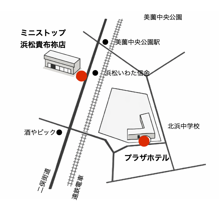 HOME | ご宿泊 | コンビニ徒歩3分 ご宿泊 メニュー 宿泊トップ 客室 館内設備 大浴室 ハウスルール モーニングサービス インターネット予約 お電話での予約 領収書について アクセス 車椅子ご利用の方へ コンビニ徒歩3分 Q&A よくある質問 指定医療機関専用プラン コンビニまで徒歩3分です はまきたプラザホテルから徒歩3-4分で「ミニストップ浜松貴布祢店」がご利用いただけます Copyright (C) 2000-2026 KANEHARA CO.LTD all rights Reserved 宿泊トップ 客室 館内設備 大浴室 ハウスルール 朝食ご案内 インターネット予約 お電話での予約 領収書について アクセス 車椅子ご利用の方へ コンビニ徒歩3分 Q&A よくある質問 指定医療機関専用プラン 地階レストラン「美覚」閉店のお知らせ