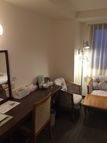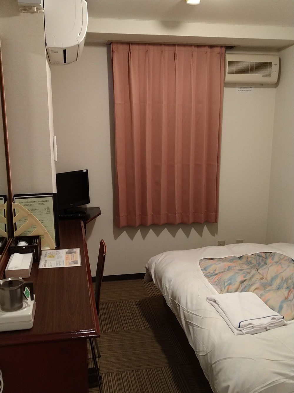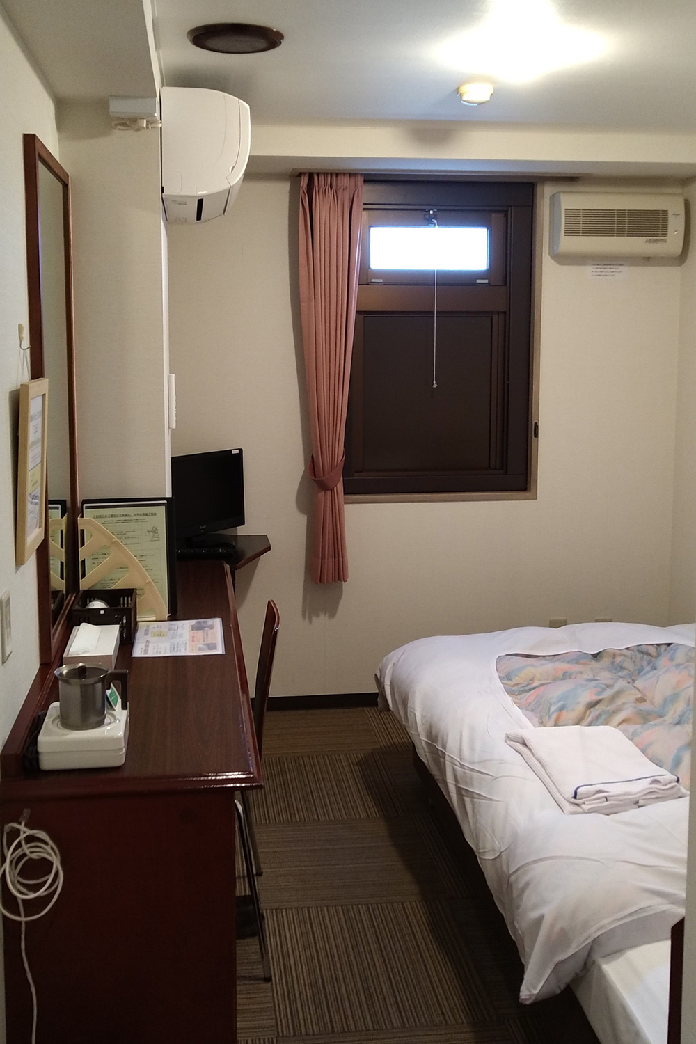 改装工事の落とし子のこのお部屋は窓がなく、景色はまったくお愉しみいただけません。 が、その分お安く提供いたします。