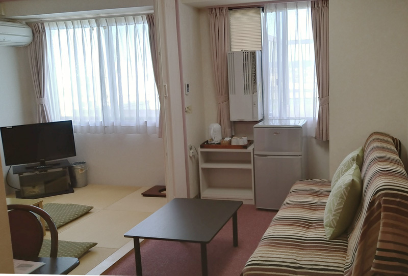 2016年に増設したこのお部屋は、ユニットバスを省略する代 わりに、シングルと同じ専有面積でありながら広々とした空間を実現しました。