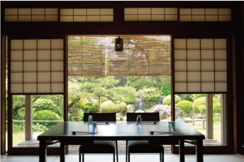 豊かな自然に囲まれ、四季折々に表情を 変える山や花々を楽しむことが出来ます。 中でも樹齢百余年を数えるドウダンツツジは当店のシンボルマークにもなっており、どのお部屋からでも 眺めることが出来るように配置しています。