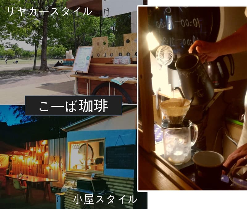 自身の営むコインランドリーと空中ヨガスタジオの駐車場内に小さな小屋を構えて営業しています。